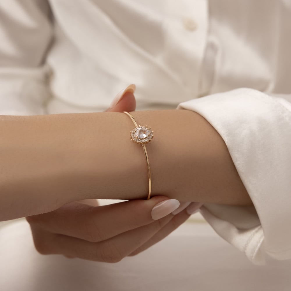 لمسة من الأناقة والرقي علي معصمك مع اسواره مطلية بالذهب ومقاومة للصدأ اسوره حريمي , تصميمها الأنيق لدائرة صغيرة تحمل في قلبها لؤلؤ أبيض يعطي لمسة من التألق لإطلالتك , احصلي عليها الآن وتمتعي بإطلالة لا تنسى